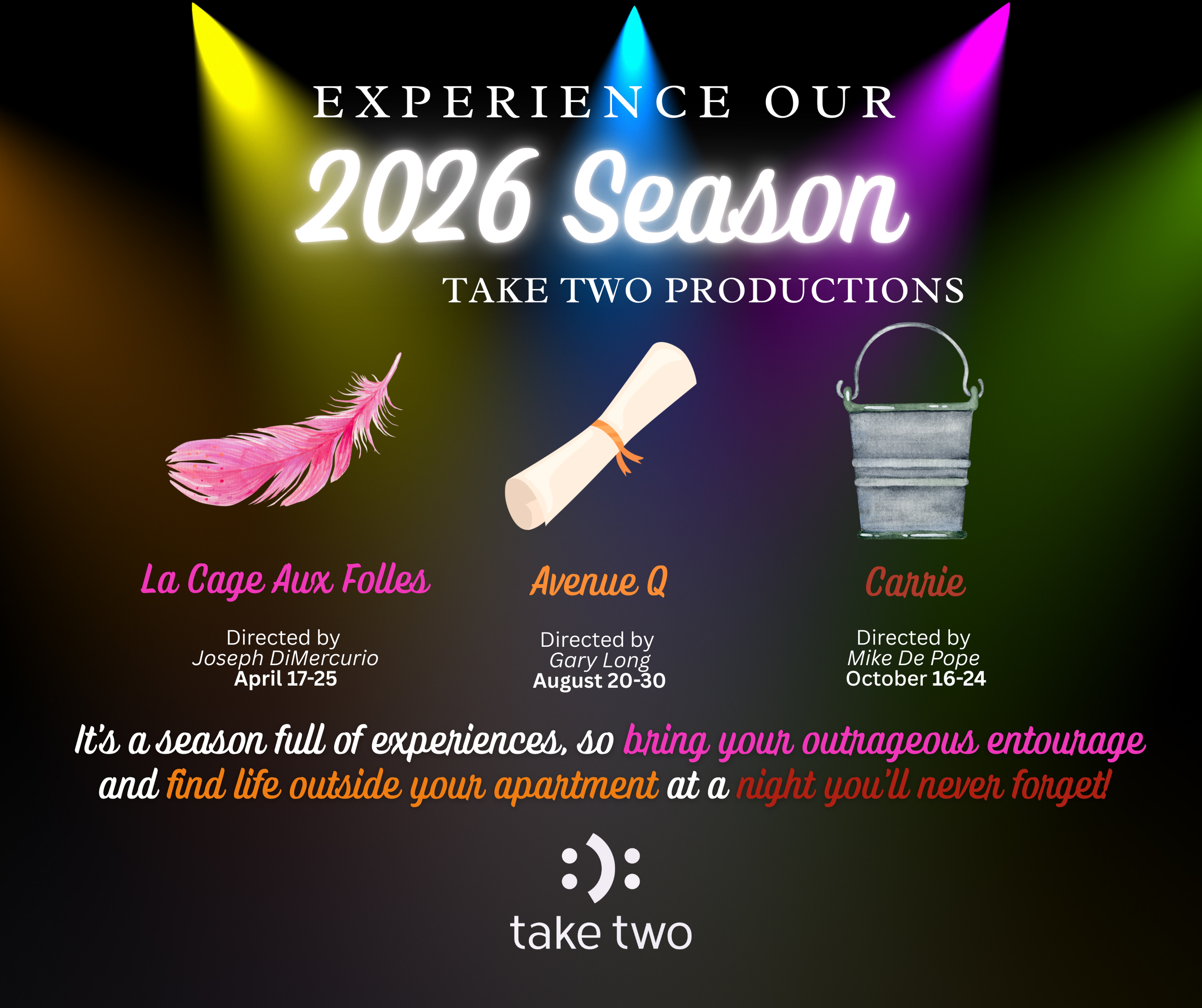 Since 2004, Take Two Productions has provided opportunities for individuals of all ages and races to develop their creative talents through live musical theater. We help people make community connections through service to and financial support of well-deserving St. Louis charities.